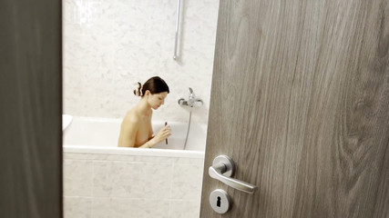 Hot Secretary Is Caught Naked Taking A Bath, By Her Boss